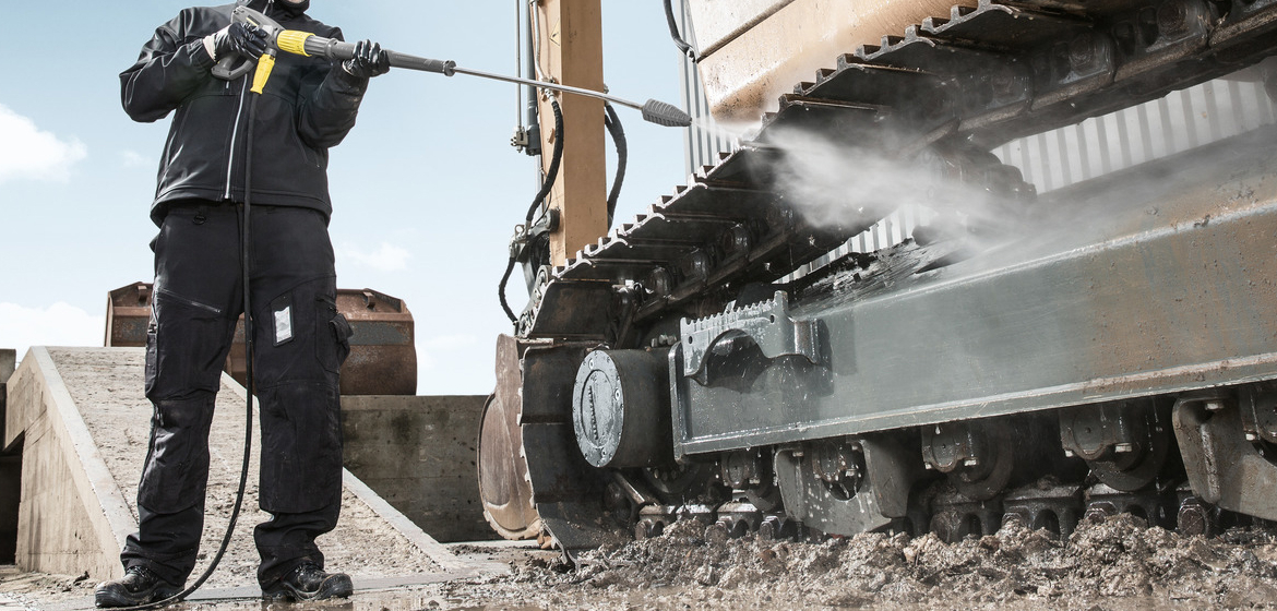 • Reinigungsarbeiten an Lokomotiv-Motoren mittels Kärcher-Hochdruck.