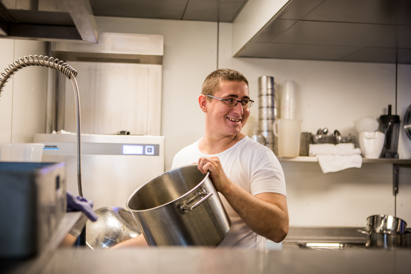 - die Kasserollen, Fritteusen, Öfen und Kippkessel sowie der Speisetransport- und Tablett Wagen werden von dir sauber gehalten